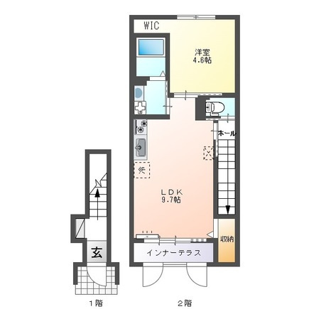 LDK 9.7帖/洋室 4.6帖 - 向き