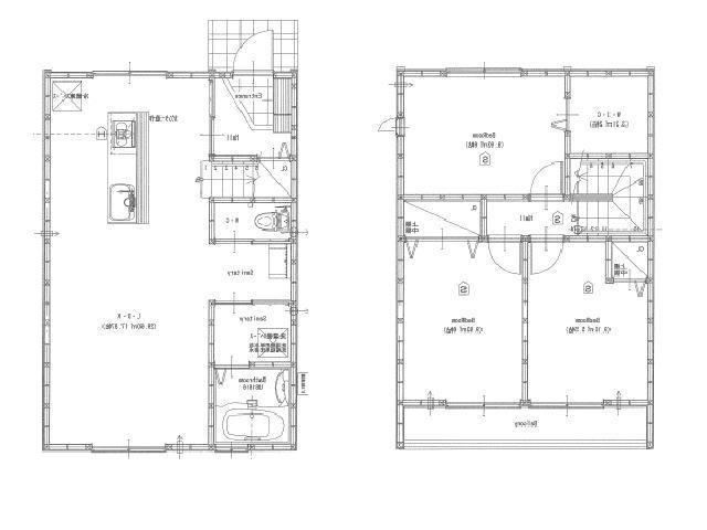 一階部分は17.8帖のリビング、たっぷりのスペースをいかしたアイランドキッチンとなっています。IH3口コンロのワイドサイズの流し台、キッチンがご家族団らんの中心です。