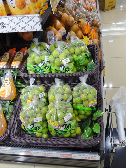 店先でも手作り梅酒の季節とばかり、たくさんの梅が売りに出されています。