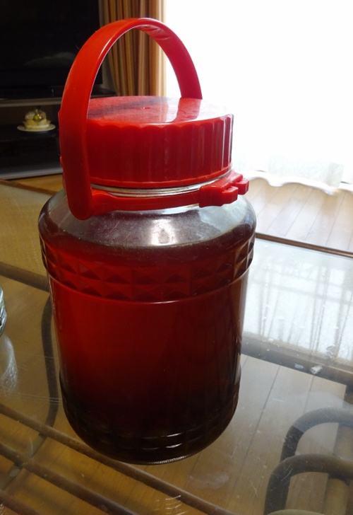 ちなみに、これは4年前の梅酒、実はつくるだけで飲まないのでこんなに琥珀色のすごいやつが出来上がっています!