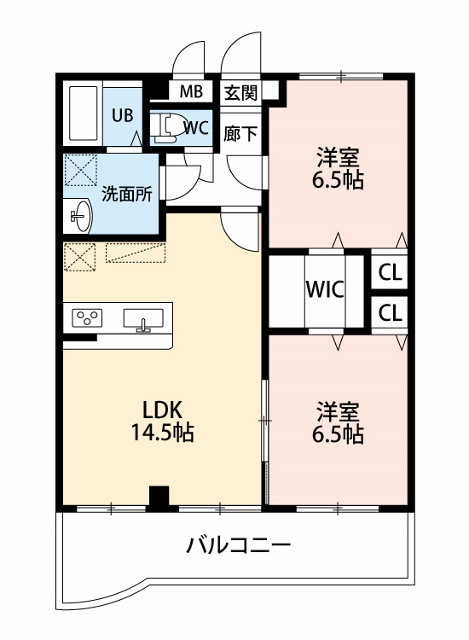 ワイドな南向きバルコニーに面した14.5帖の広いリビングが魅力です。